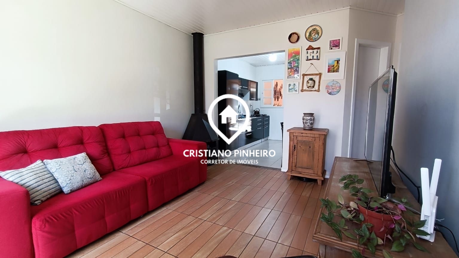 Cristiano Pinheiro vende excelente casa no bairro São Luiz com 3 dormitórios, 2 banheiros, sala de jantar ampla e ensolarada com portas de vidro, forro em cedro e eucalipto, piso em porcelanato, sala com lareira integrada à cozinha.
