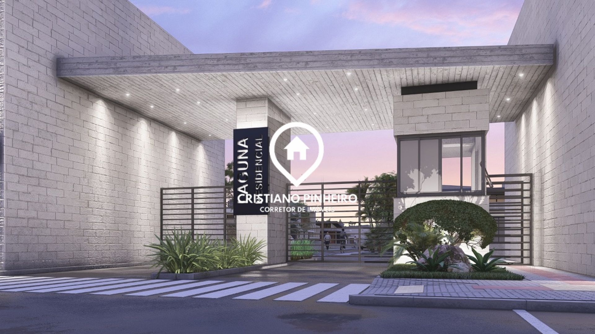 O Residencial Laguna possuirá Iluminação com poste de concreto, fechamento em muro de concreto, ruas com PAVS e com meio fio,