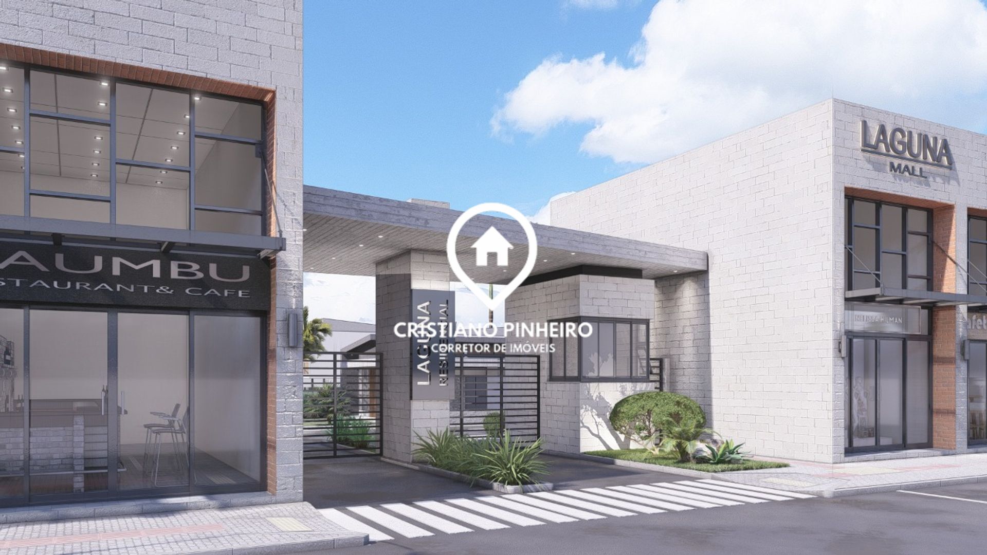 Conta também lojas comerciais na entrada do condomínio.